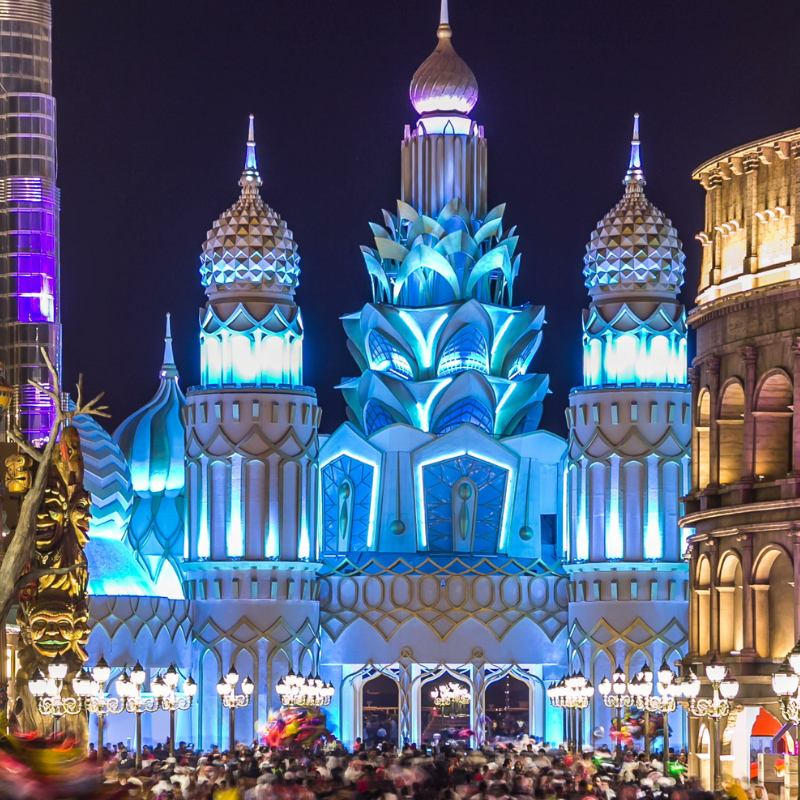 Global Village on tähelepanuväärne vabaõhuturg, mis on täis hulgaliselt kaubanduspaviljone, millest igaüks esindab erinevaid riike üle maailma. Igas paviljonis saab sukelduda erinevate rahvaste lauludesse, tantsudesse, folkloori ja traditsioonidesse. Samuti on teil võimalus osta erinevaid unikaalseid suveniire. Nautige einestamisvõimalusi erinevatest köökidest ja imetlege lummavaid värvikaid etendusi. Meelelahutusprogrammide, atraktsioonide ja elava muusika pakkumisega ootab teid Global Village pidulik õhkkond!